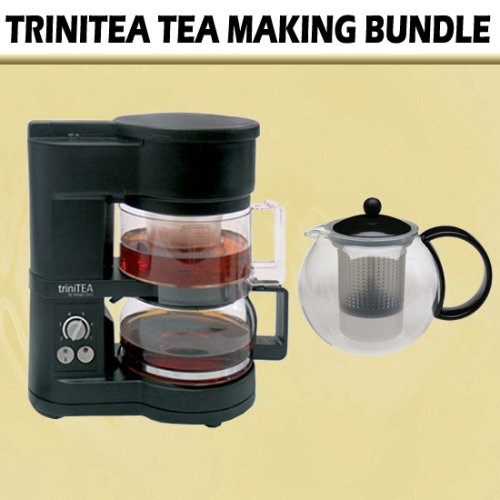 Looking to simplify preparation of loose tea? The tiniTEA electric tea maker is the answer. Say goodbye to kettles, teapots and oversteeped cups. This wondrous appliance does it all - boils water, steeps leaves, and keeps tea warm so you may enjoy it all day long. New model now has variable temperature control and timer to let you control the strength of an infusion, ensuring a perfect cup each time. The triniTEA takes care of the hard parts for you - especially the temperature control. If you brew delicate teas, green teas and white teas with boiling water, you are sure to get a bitter brew. The triniTEA tea brewer's three temperature settings means you no longer need to monitor water temperature with a thermometer and wait until you reach the perfect temperature to start steeping. Now perfect tea brewing is as easy as setting and starting the brewer. The three step process is fun to watch. Water is heated in the top chamber then at the right temperature drops to the middle chamber where the tea leaves steep. Finally, the brewed tea falls to the carafe where it is kept warm, ready to enjoy.